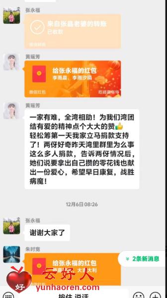 黄女士的丈夫介绍,这几天,湾里的村民在微心群为妻子捐了10000多元爱心款。“这份情,我们一家人会记一辈子。” 他含泪说。